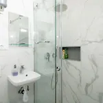 This apartment offers guests the convenient feature of a hair dryer and bath sheets in the bathroom. A walk-in shower and a separate toilet can also be found.